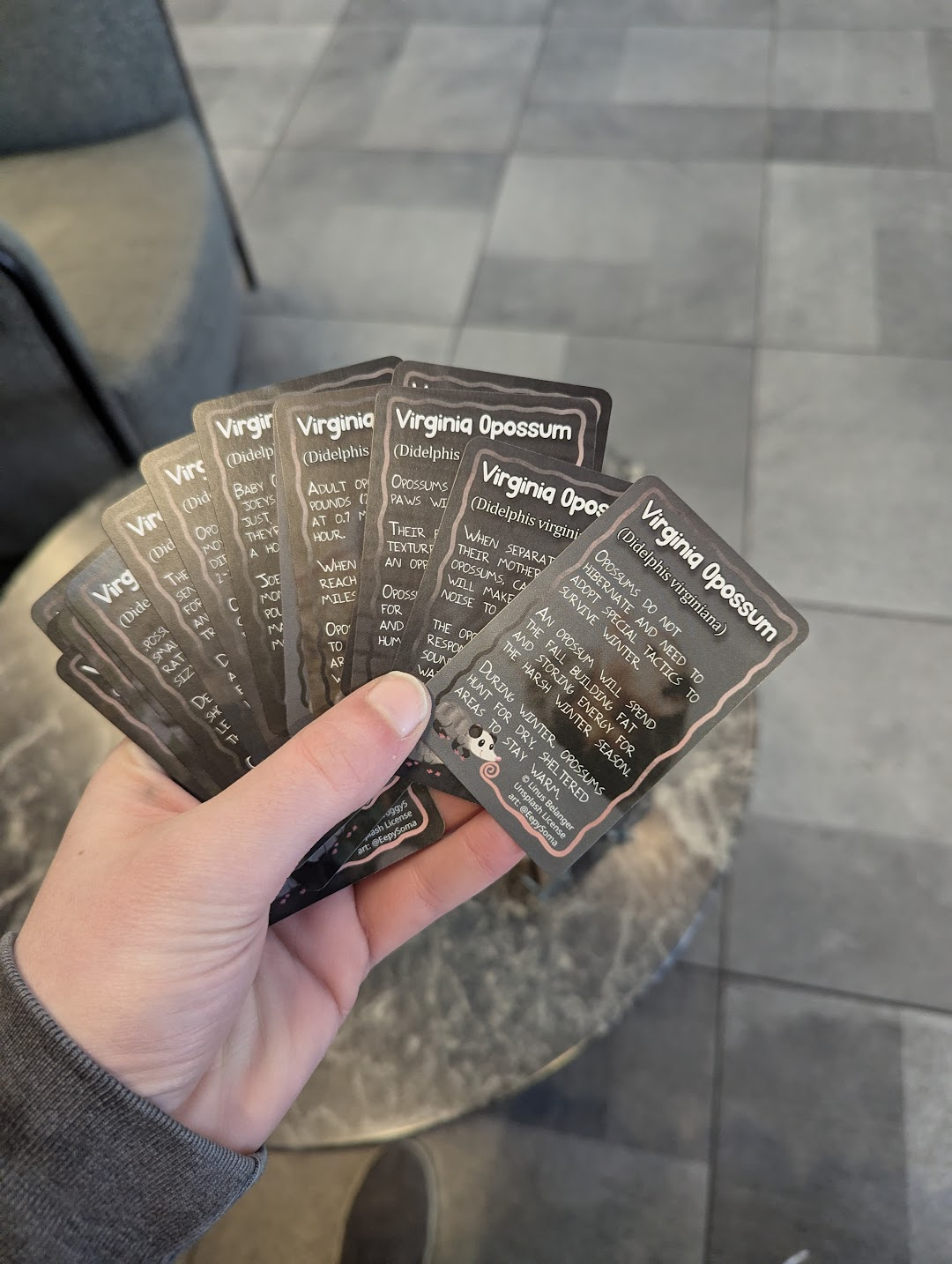 Another fun thing I did was make a set of Opossum trading cards: